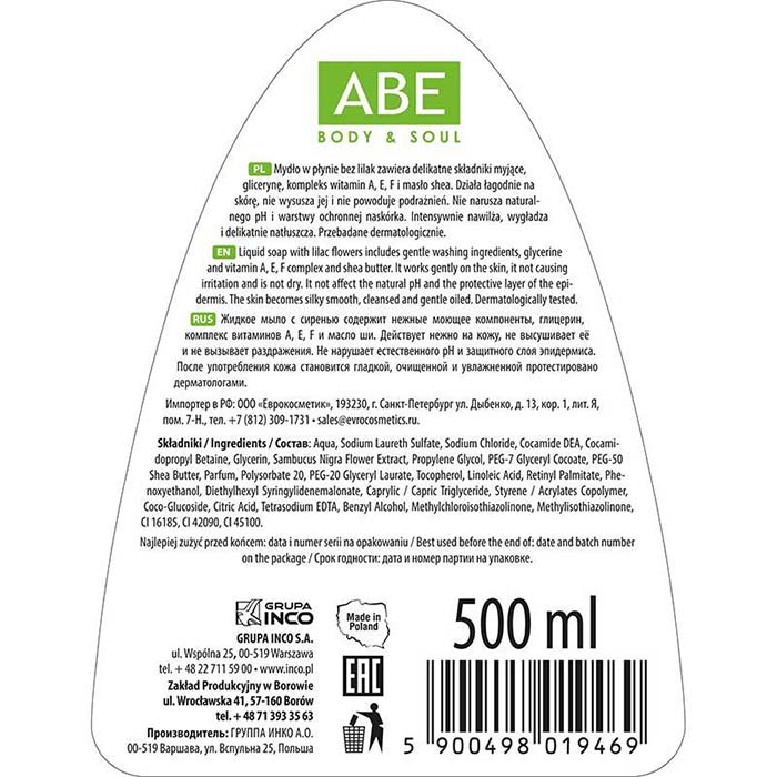 Szczegółowe informacje o mydle w płynie ABE Body & Soul Bez