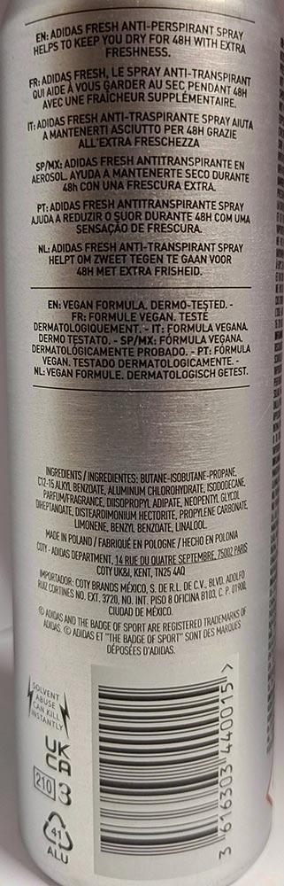 Szczegółowe informacje o męskim antyperspirancie w sprayu, linii Adidas Fresh