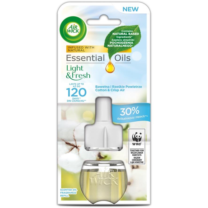 Szczegółowe informacje na temat wkładu do elektrycznego odświeżacza powietrza, linii Air Wick Essential Oils Light & Fresh Bawełna i Rześkie Powietrze