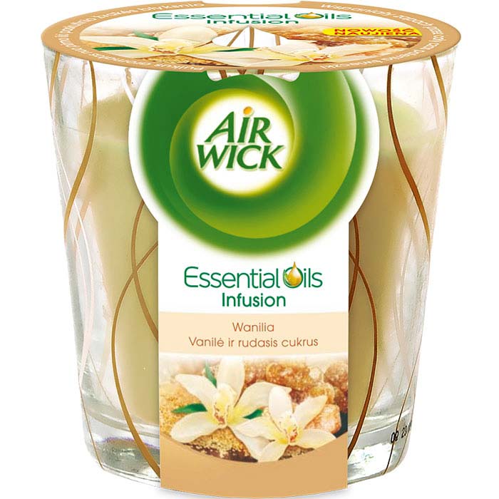 Szczegółowy opis świeczki zapachowej Air Wick Essential Oils Infusion Wanilia z Brązowym Cukrem