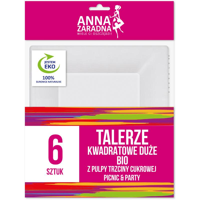 Parametry Anna Zaradna talerze kwadratowe duże Trzcina Cukrowa 6 sztuk