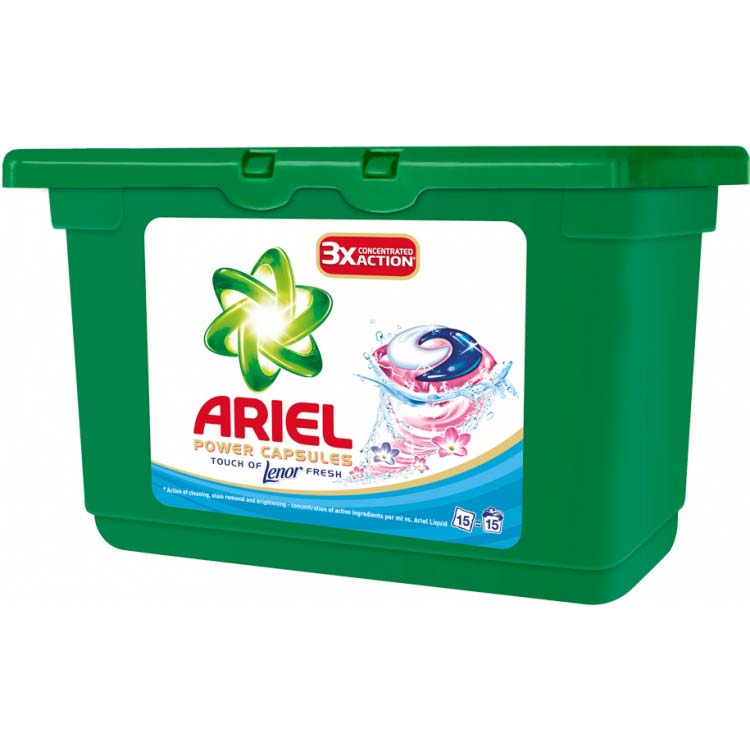 Kapsułki do prania Ariel 3w1 z Lenorem zapewniają czyste i pachnące pranie. Doskonale usuwają plamy i nadają tkaninom połysk. Formuła gwarantuje doskonałe efekty piorące, likwiduje nawet największe zabrudzenia i chroni tkaniny przed ponownych ich osadzaniem. Środek należy stosować do ubrań białych i jasnych. W opakowaniu 15 kapsułek.