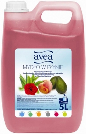 Mydło w płynie zamknięto w bańce o pojemności 5. litrów.