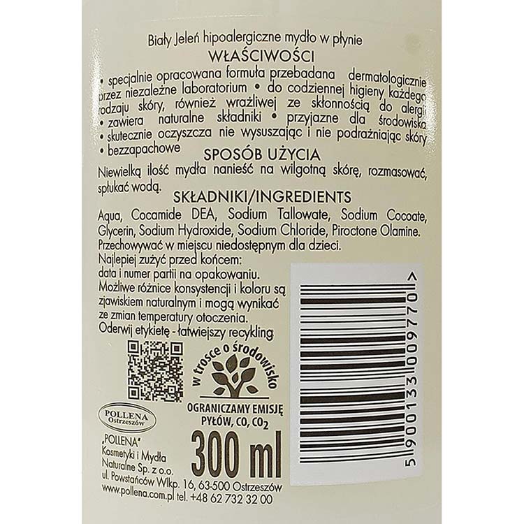 Opis Biały Jeleń hipoalergiczne mydło w płynie 300ml pompka