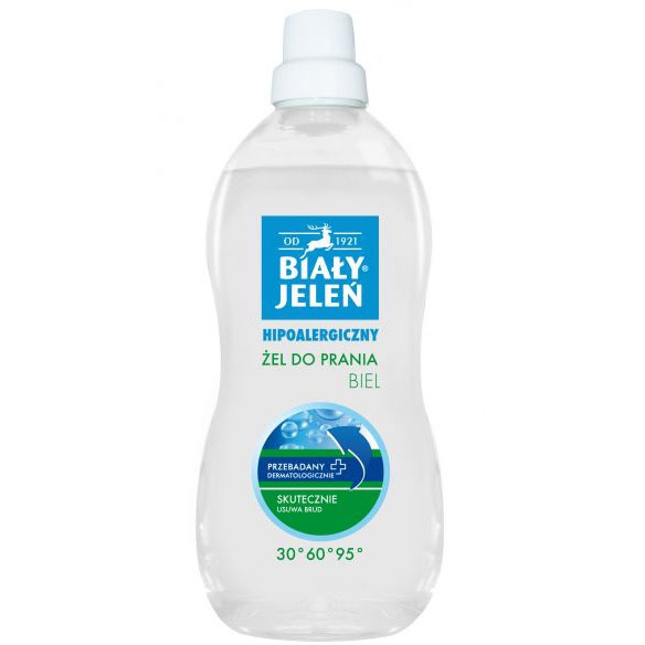 Opis Biały Jeleń hipoalergiczny żel do prania białego 1,5L