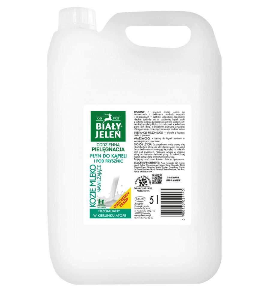 Opis Biały Jeleń Kozie Mleko płyn do kąpieli i pod prysznic 5L
