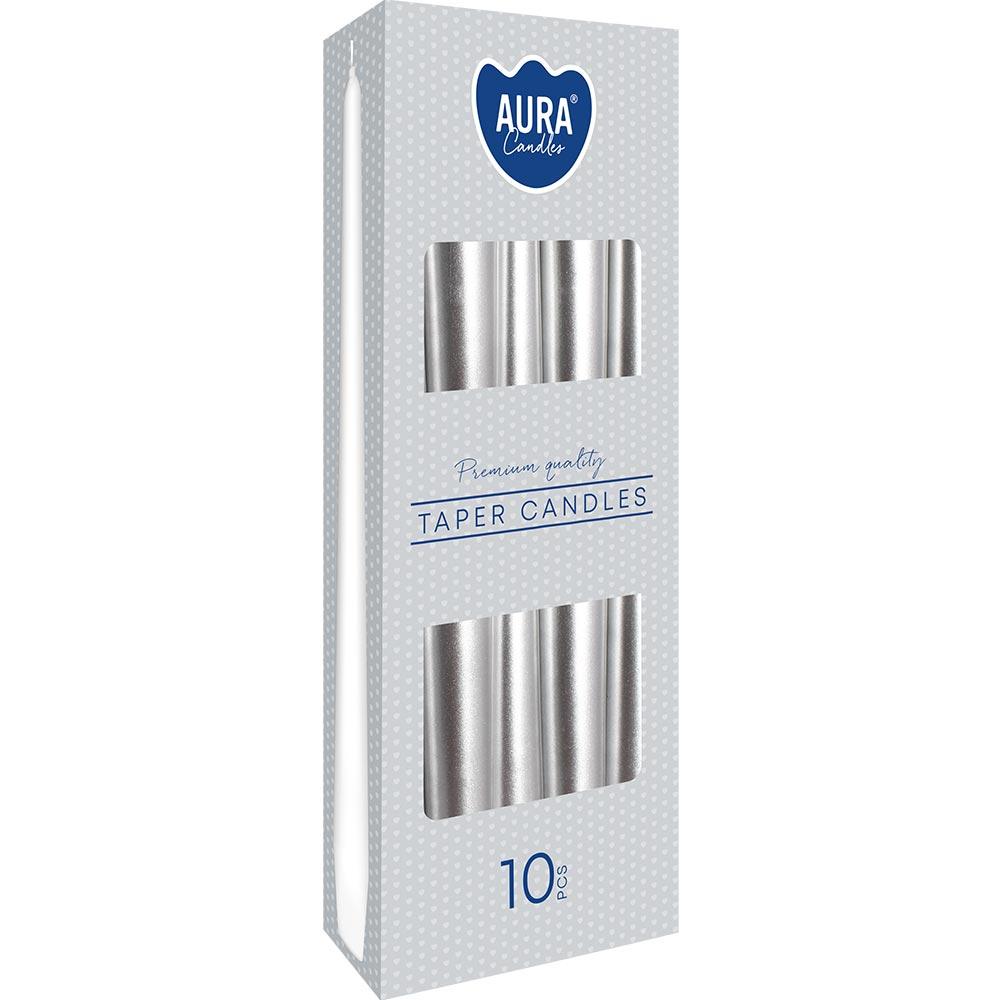 Bispol świeca bezzapachowa stożkowa serbrny metalik 10szt