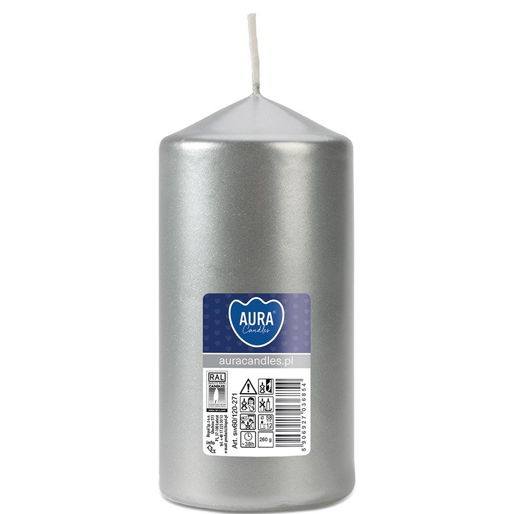 Bispol świeca walec wys. 12cm, śr. 6cm metaliczna srebrna 1szt bezzapachowa