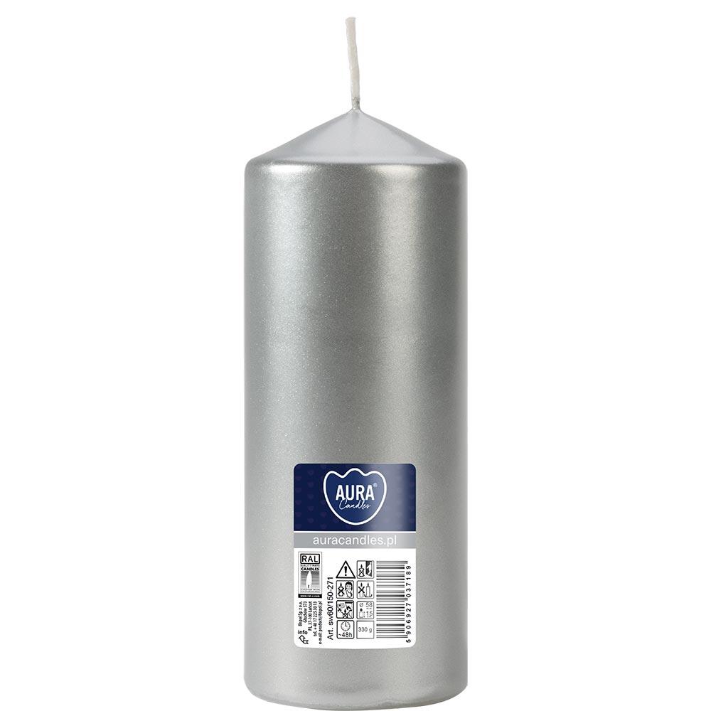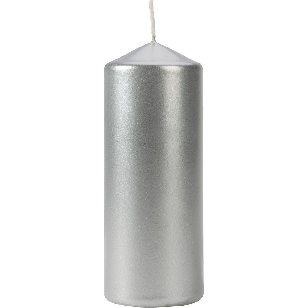 Bispol świeca walec wys. 15cm, śr. 6cm metaliczna srebrna 1szt bezzapachowa