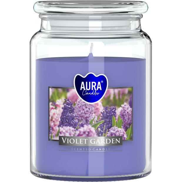 Przedstawiamy Państwu dużą świecę zapachową w słoiku z wieczkiem snd99-343 Violet Garden.