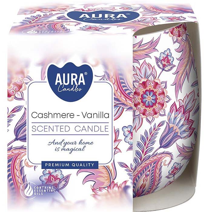 Kompozycja zapachowa świeczki w ozdobnym szkle, linii Bispol Aura sn71s-61 Kaszmir – Wanilia