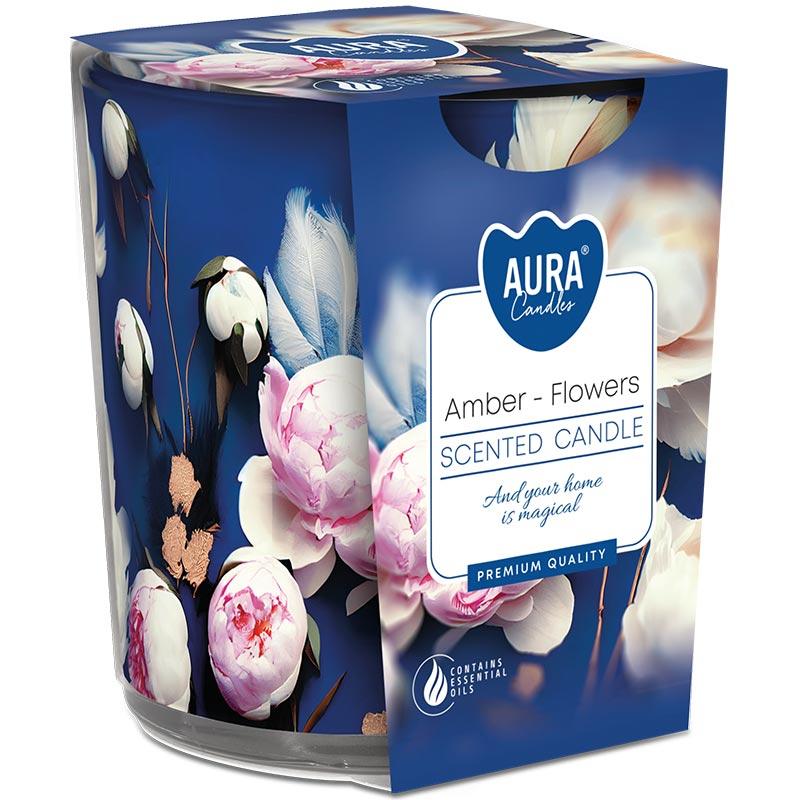 Bispol Aura sn72s-57 Bursztyn - Kwiaty świeczka zapachowa w prostym szkle z wzorem