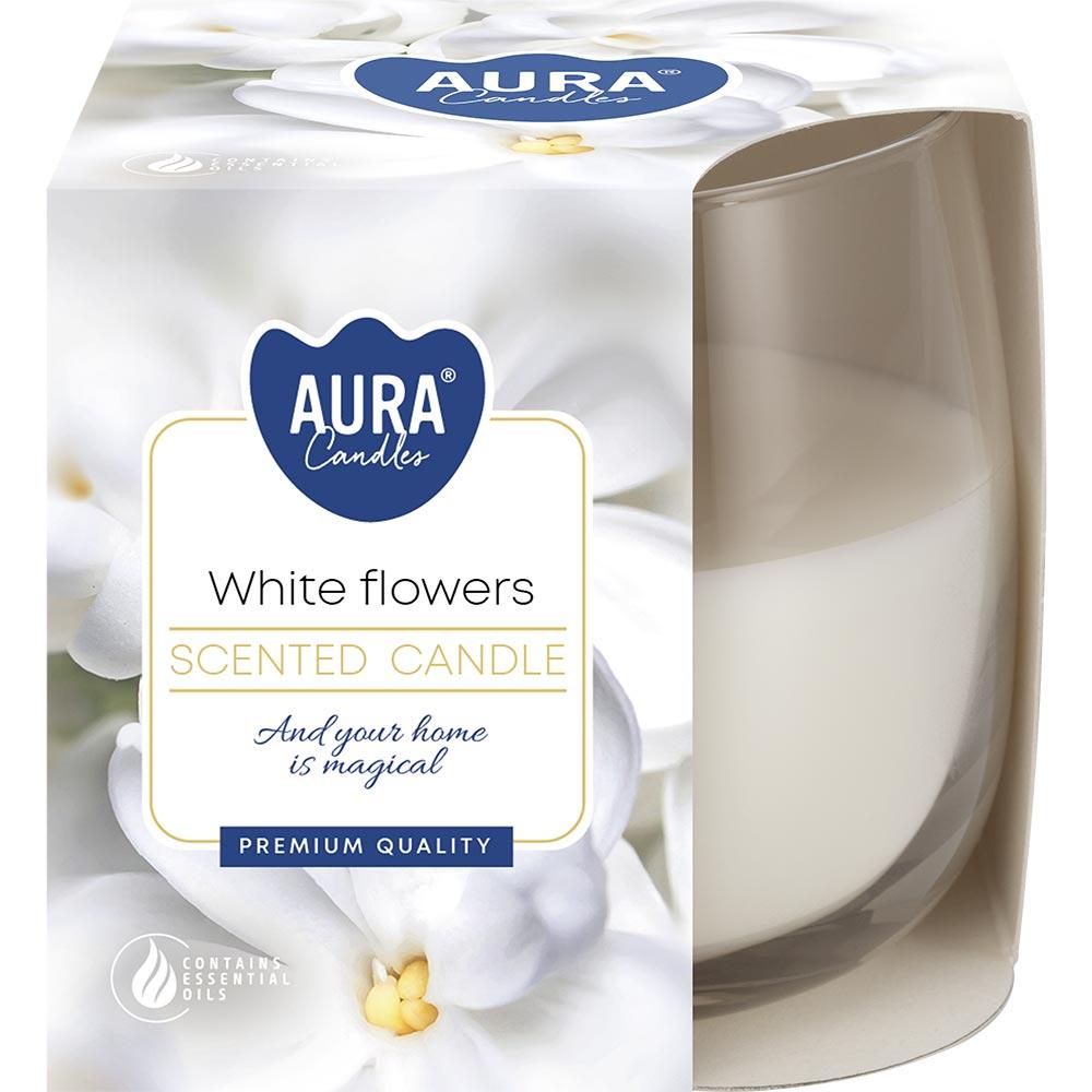 BISPOL świeca zapachowa w szkle białe kwiaty