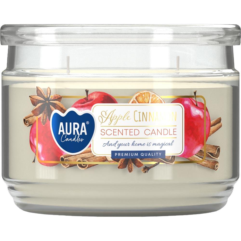 Przed Państwem świeca zapachowa w szkle z dwoma knotami, linii Bispol Aura Jabłko i Cynamon.