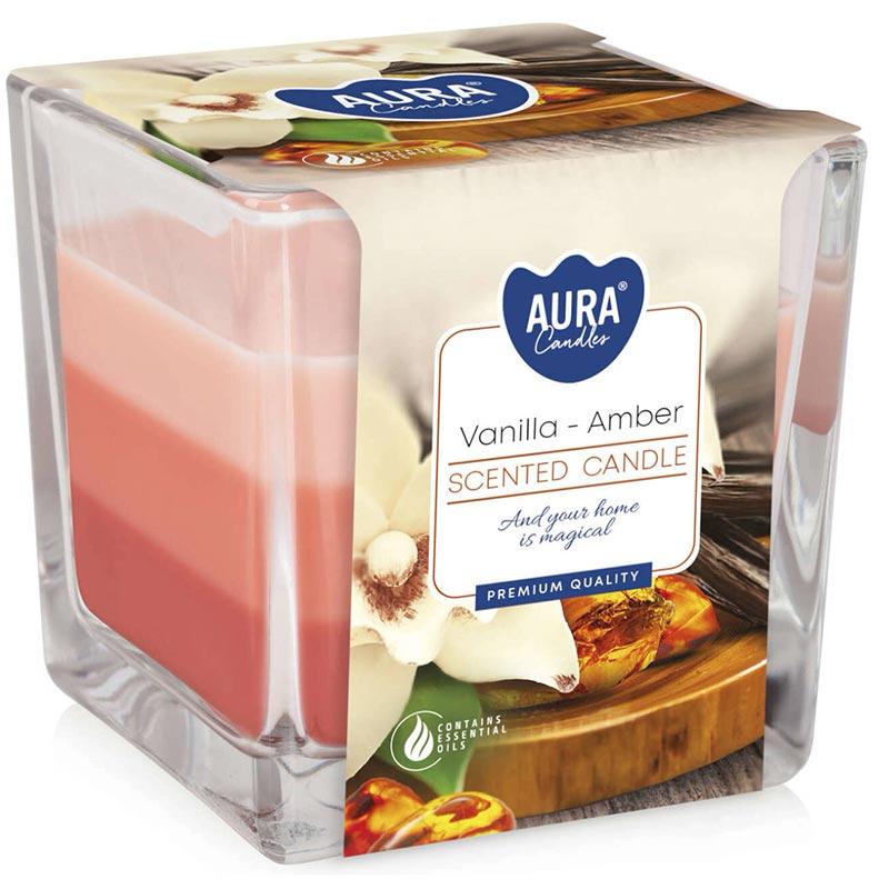 Bispol trójkolorowa świeczka zapachowa w kwadratowym szkle Wanilia - Bursztyn