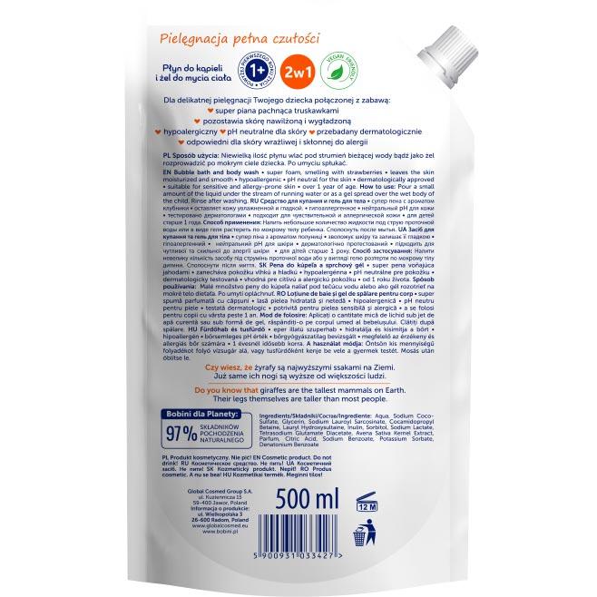Bobini Fun płyn do kąpieli i żel do mycia ciała 2w1 Truskawkowa Wyspa 500ml zapas