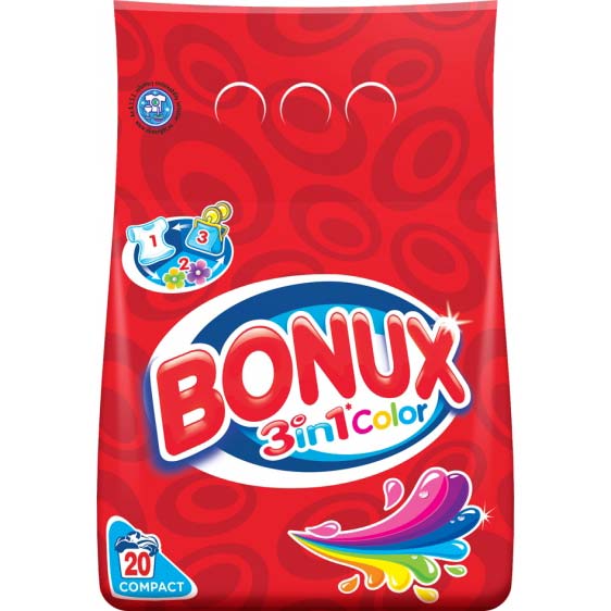 Bonux to świetny środek do prania kolorowych tkanin. Pierze już w temperaturze 30°C przy czym doskonale usuwa nawet najtrudniejsze zabrudzenia i pielęgnuje kolory. Formuła 3 w 1 zapewnia stuprocentową czystość, niską cenę i świeżość, która długo się utrzymuje. Opakowanie 1,5kg wystarcza na około 20 prań.
