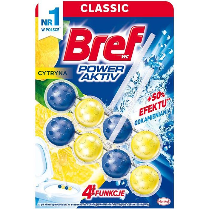 Jeśli szukają Państwo prostego sposobu na utrzymanie czystości i świeżości w toalecie, to nie zostaje nic innego, jak zaopatrzyć się w czterofunkcyjną zawieszkę do WC z serii Bref Power Aktiv Lemon.