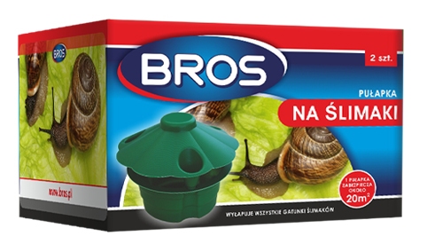 Bros pułapka na ślimaki wszystkich gatunków, zarówno nagie jak i ze skorupą. Przemyślanie zaprojektowany pojemnik z otworami skutecznie wyłapuje ślimaki. Płyn do pułapki zawiera składniki przyciągające szkodniki. Jedna pułapka wystarcza na cały sezon i chroni 20m2 terenu. Produkt praktycznie zbudowany i prosty w użytkowaniu.