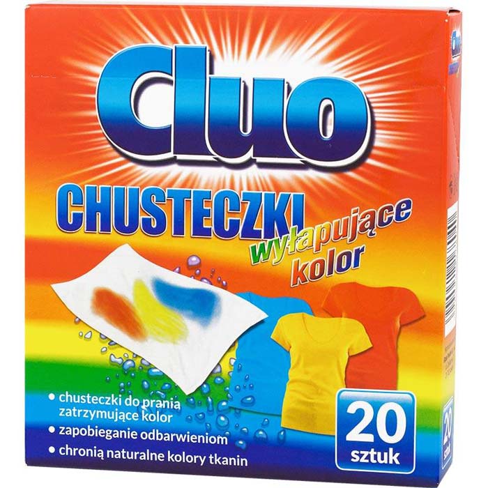 Opis Cluo chusteczki przeciw farbowaniu tkanin 20szt.