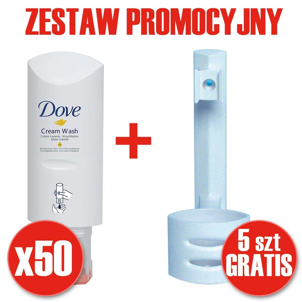 Pakiet promocyjny zawierający wyjątkowe mydło w płynie (DOVE 300ml) oraz dozownik (uchwyt ścienny) ułatwiający dozowanie produktu. Dozownik jest bardzo prosty w montażu i zawiera wszelkie elementy do niego wymagane. Butelkę z mydłem po opróżnieniu należy wymienić na nową umieszczając ją w uchwycie.