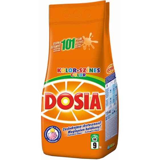 Dosia proszek przeznaczony do prania tkanin kolorowych. Skutecznie usuwa wszelkie plamy już w niskich temperaturach chroniąc kolory i nie niszcząc tkanin. Opakowanie wystarcza na ok. 90 prań.