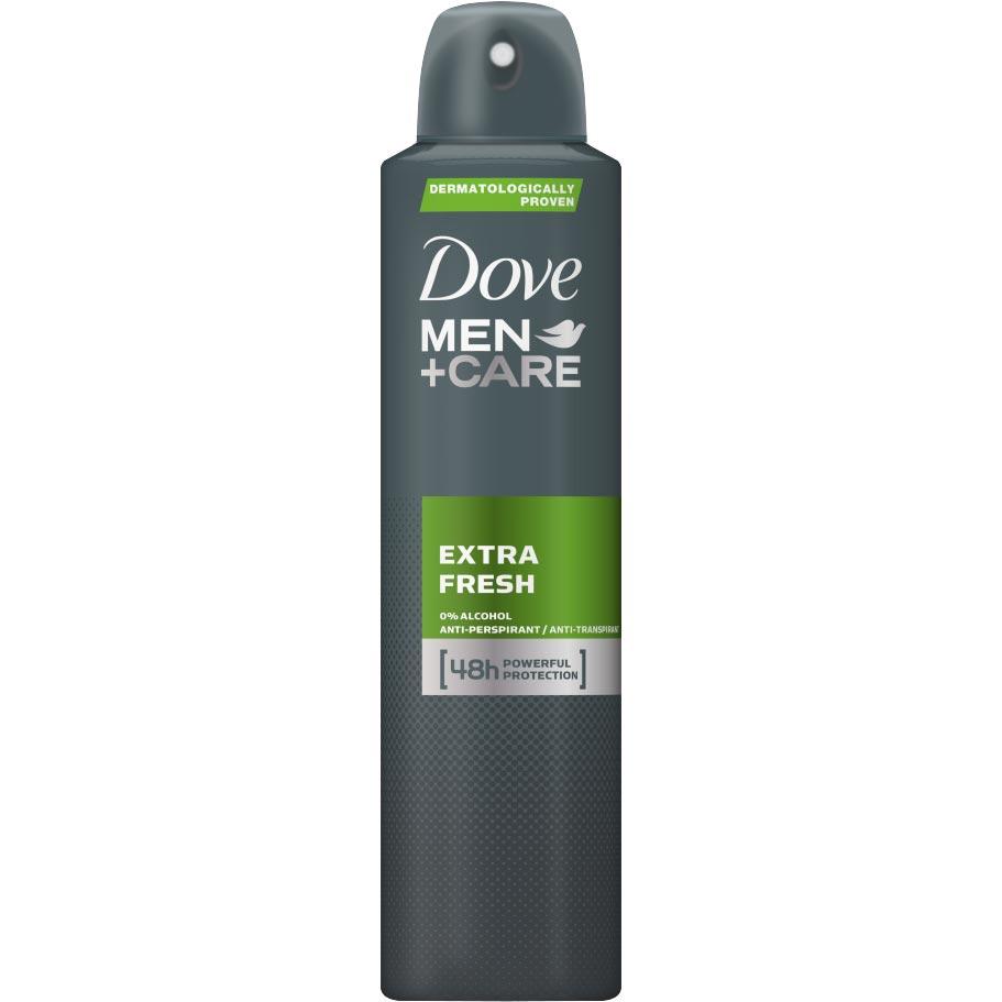 Dezodorant w sprayu Dove Men+Care Extra Fresh chroni przed poceniem i nieprzyjemnym zapachem ciała przez 48 godzin. Dezodorant zawiera krem nawilżający, który odżywia i zmiękcza skórę pod pachami przy każdym użyciu. Świeży, subtelny zapach sprawi, że każdy dzień zaczniesz w dobrym samopoczuciu. Bezwzględny dla potu i delikatny dla skóry. Formuła nie zawiera alkoholu i jest testowana dermatologicznie.