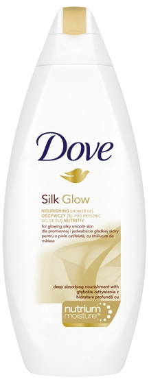 Dove żel pod prysznic Silk Glow. Wspomaga nawilżanie skóry. Odżywia skórę i nadaje jej piękniejszy wygląd. Pojemność 250ml.