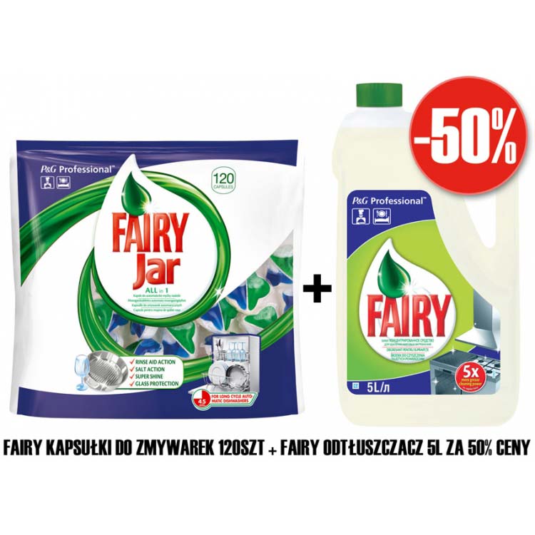 Opis Fairy zestaw kapsułki do zmywarek 120szt + Fairy odtłuszczacz 5L