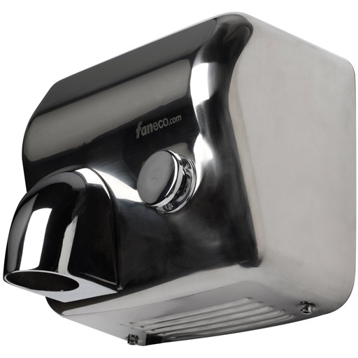 Faneco SIROCCO to uruchamiana mechanicznie - za pomocą przycisku, suszarka do rąk o mocy 2500 W. Wykonana została ze stali nierdzewnej, polerowanej. Posiada ruchomą dyszę, dzięki czemu można ustawić pod dowolnym kątem ulatywanie strumienia ciepłego powietrza. Po aktywowaniu przyciskiem, suszarka działa 15-20 sekund, po czym automatycznie się wyłącza, co pozwala zaoszczędzić na zużyciu energii. Jej obudowa jest bardzo wytrzymała i odporna na uszkodzenia. Doskonale prezentuje się na ścianie w każdej łazience.