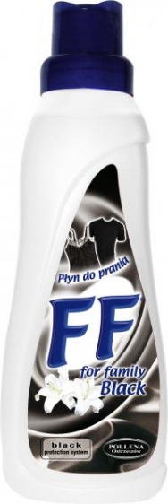 FF płyn do prania tkanin czarnych i ciemnych. Do prania ręcznego i w pralkach automatycznych. System ochrony czerni powoduje że ciemne tkaniny nie blakną i dłużej wyglądają jak nowe. Pojemność 500ml.