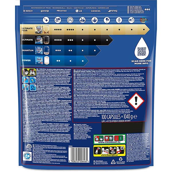 - posiadają biodegradowalną folię, która ulega całkowitemu rozpuszczeniu, dzięki czemu nie osadzają się one na naczyniach oraz częściach zmywarki