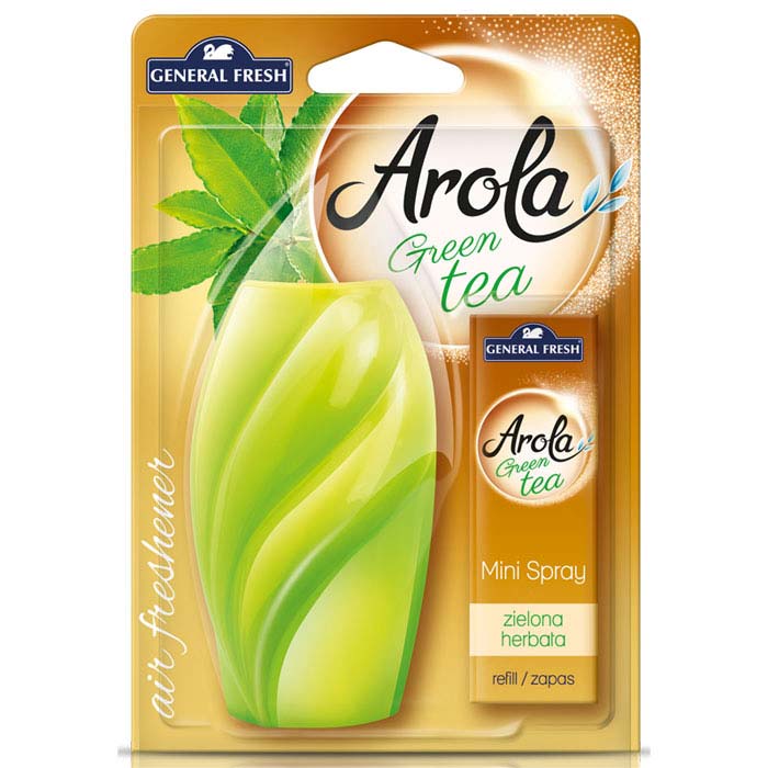 Odświeżacz powietrza Arola w formie mini sprayu o zapachu zielonej herbaty doskonale sprawdzi się zawsze wtedy, kiedy będziesz chciał pozbyć się nieprzyjemnych zapachów. Możesz go używać zarówno w pomieszczeniach w domu, jak też w samochodzie. Uwolniony zapach utrzymuje się przez długi czas. W zestawie urządzenie z wkładem wymiennym.