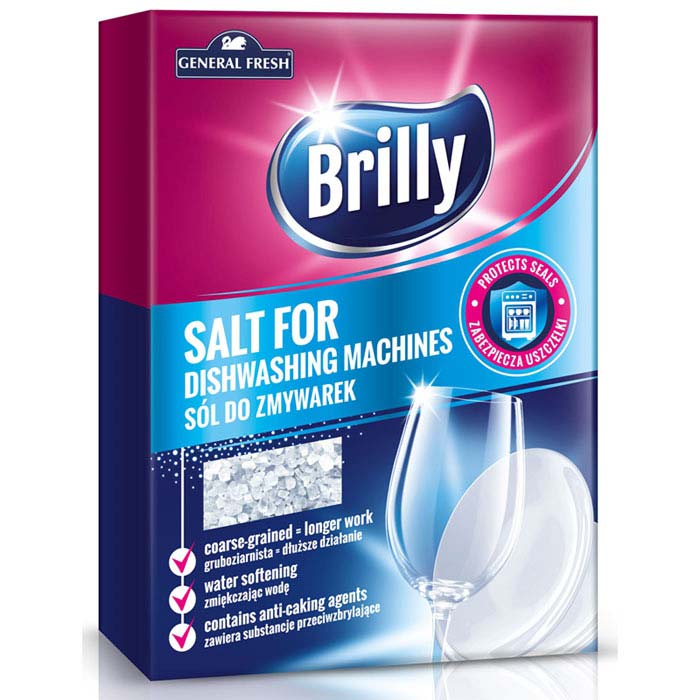 Sól do zmywarki o grubej ziarnistości. Środek efektywnie chroni części zmywarki, zmiękcza wodę, zapobiegając osadzaniu się kamienia na elementach urządzenia. Preparat dodatkowo zwiększa wydajność mycia, sprawia, że naczynia pozostają czyste, bez smug i zacieków. Produkt swoim działaniem przedłuża żywotność zmywarki. Nie zawiera substancji zapachowych. Opakowanie zawiera 1,5kg.