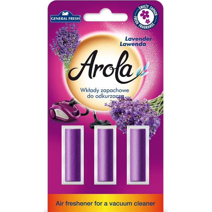 Zapachowe wkłady do odkurzacza Arola o zapachu lawendy to niezawodny sposób na uprzyjemnienie chwil spędzonych na sprzątaniu. Ich świeży aromat sprawi, że odkurzanie nie będzie już niemiłym obowiązkiem. Zmieniając worek wystarczy umieścić w nim wkład lub po prostu wciągnąć do odkurzacza prez rurę. Później za każdym razem po włączeniu odkurzacza będziesz czuć piękny zapach. Opakowanie zawiera 3 szt.