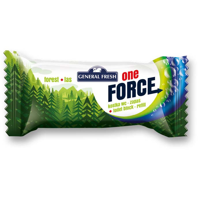 One Force zapas kostki do wc o zapachu leśnym. Kostka toaletowa One Force wypełni Twoją toaletę niesamowitą świeżością i wyjątkowo pięknym zapachem. Za jej sprawą każdorazowo podczas spłukiwania wody powstaje aktywna piana, która zawiera substancje czyszczące i dezynfekujące. Kostkę łatwo i szybko umieszcza się w koszyczku. Opakowanie zawiera 40g.