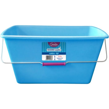 Prostokątne wiadro o wymiarach ok. 20 x 40 cm i pojemności 13 litrów, wykonane z solidnego plastiku z metalową rączką. Wiadro idealnie pasuje do mopa podręcznego stojącego marki Gosia. Dzięki swojej prostokątnej budowie zajmuje niewiele miejsca. Oczywiście wiadra można też używać do innych prac w zależności od potrzeb.