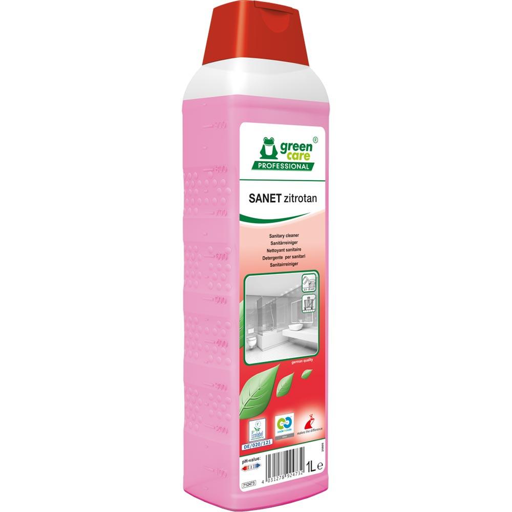 Poznaj Green Care Professional Sanet Zitrotan. To profesjonalny, kwasowy środek do czyszczenia sanitariatów, wykorzystujący naturalne kwasy, które znajdują się w cytrynach.