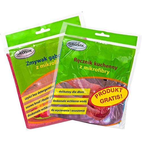 Opis Grosik pakiet z mikrofibry ręcznik kuchenny + zmywak gąbczasty GRATIS!