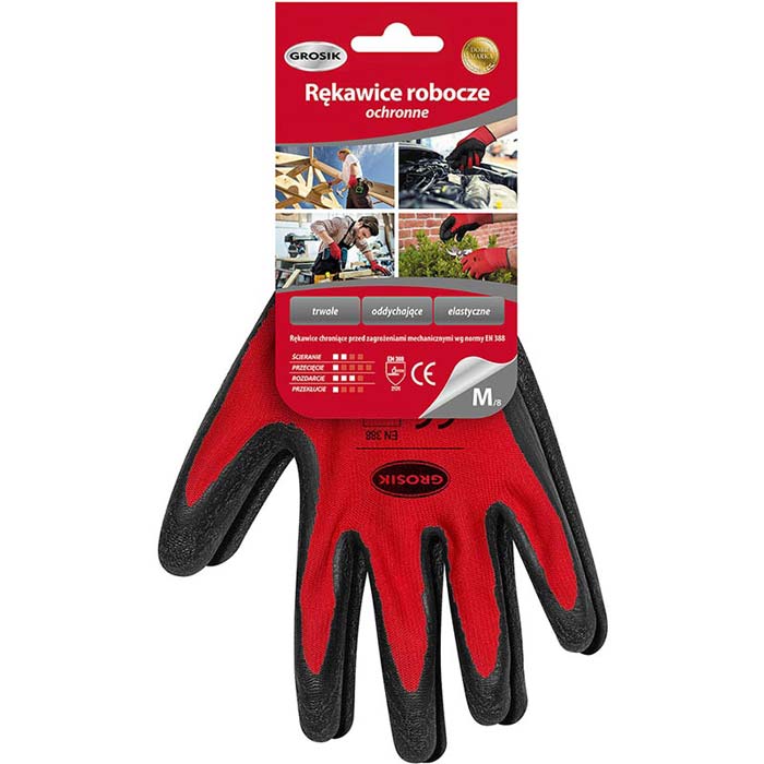 Podczas prac mechanicznych, transportowych, ogrodowych i wszystkich innych, kiedy Twoje dłonie narażone są na urazy, świetnie sprawdzą się robocze rękawice ochronne Grosik. Wykonane zostały z wytrzymałej dzianiny i wyłożone warstwą antypoślizgową, która umożliwia pewny chwyt bez obaw o przesuwanie się trzymanego przedmiotu. Są elastyczne i dopasowują się do dłoni.