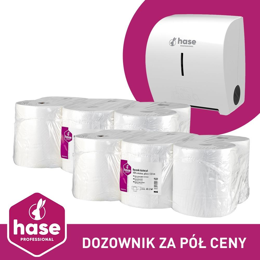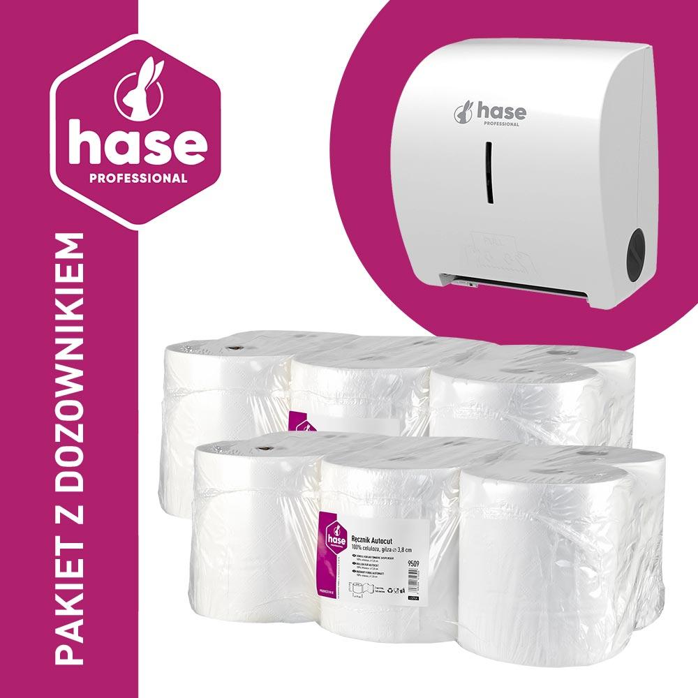 Hase autocut PAKIET ręcznik 2W, 140m biały celuloza, 12 sztuk + dozownik