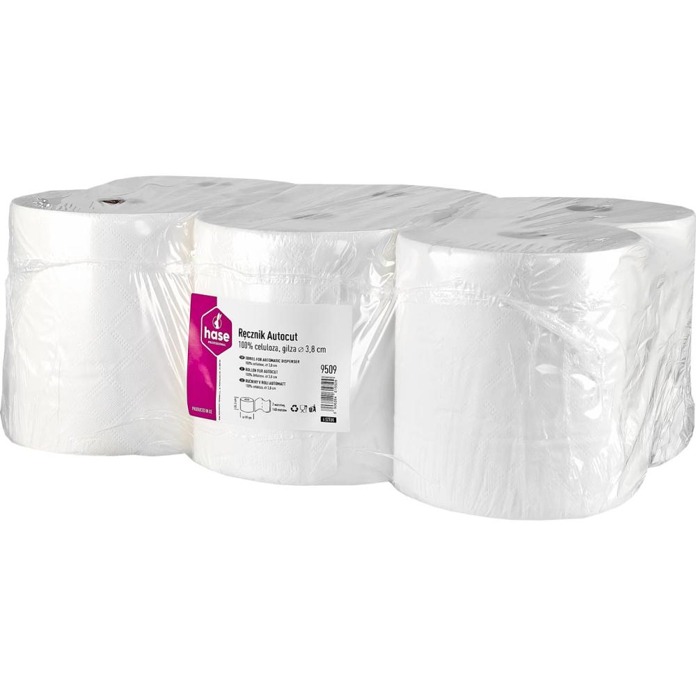 Hase 9509 Autocut dwuwarstwowe, gofrowane ręczniki papierowe 140m, 6 sztuk Białe