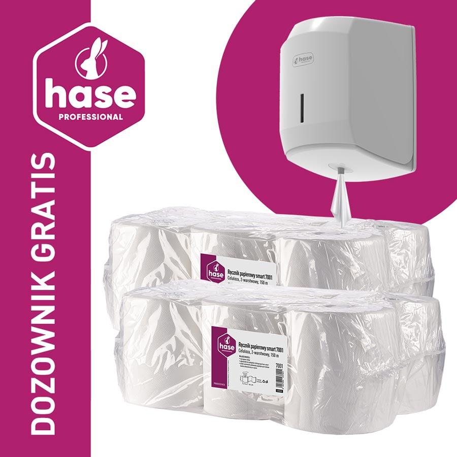 Hase SMART PAKIET ręcznik 2W, 150m biały, celuloza, 12 sztuk + dozownik GRATIS!
