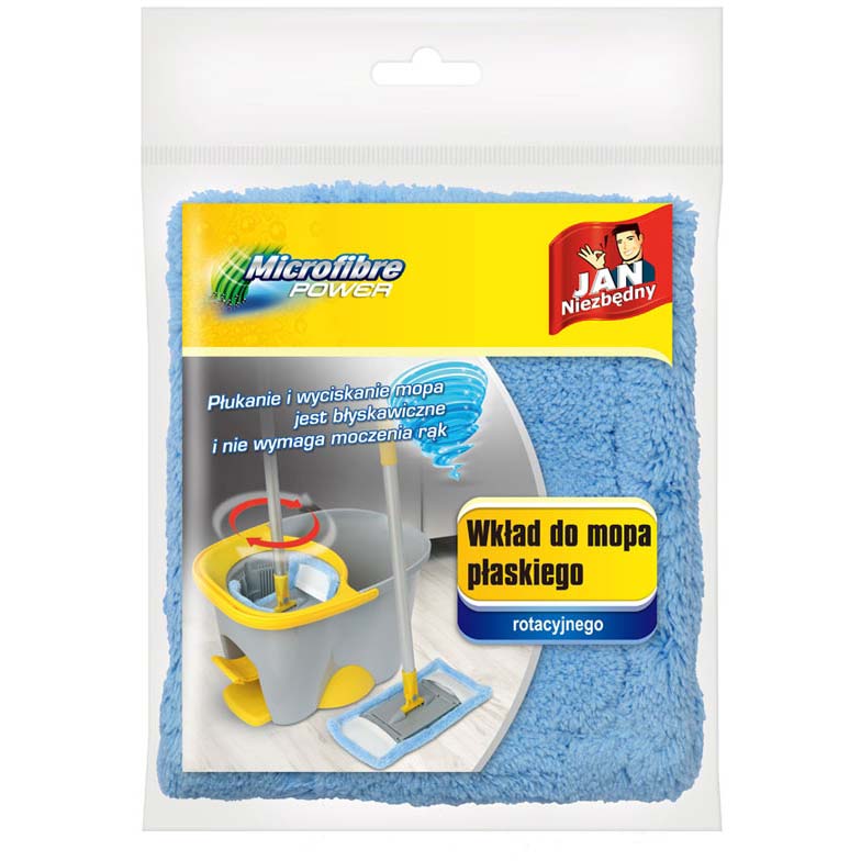 Wkład do płaskiego mopa rotacyjnego. Końcówka wykonana z doskonałej jakości grubej mikrofibry o wysokiej chłonności i wytrzymałości. Struktura mikrofibry umożliwia mycie podłóg bez użycia detergentów. Opakowanie zawiera 1 sztukę.