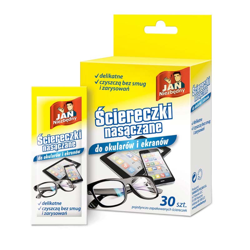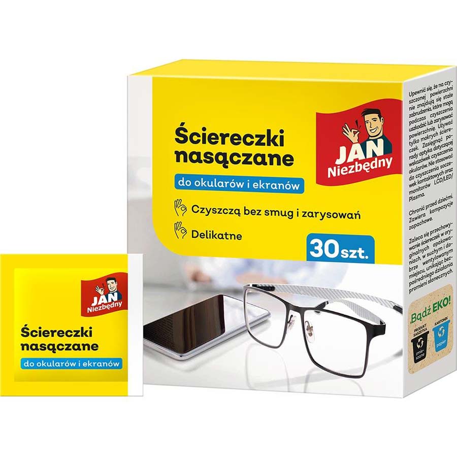Opis Jan Niezbędny nawilżane ściereczki do okularów i ekranów 30 sztuk