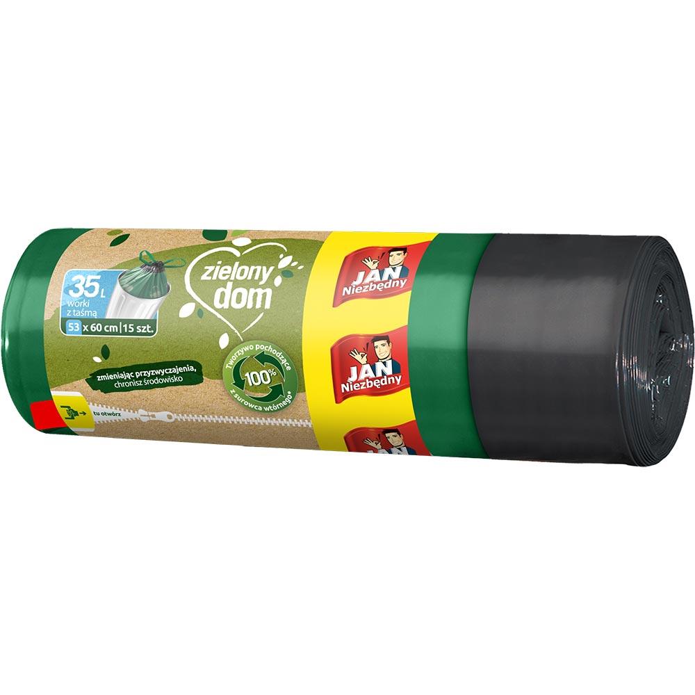 Opis Jan Niezbędny worki na śmieci ekologiczne LD 35L/15 sztuk z taśmą