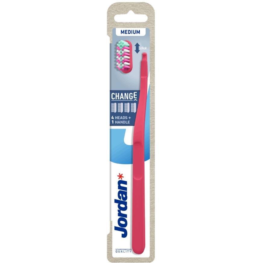 Jordan Change Medium szczotka do zębów rączka+ 4 wymienne główki ze średnim włosiem