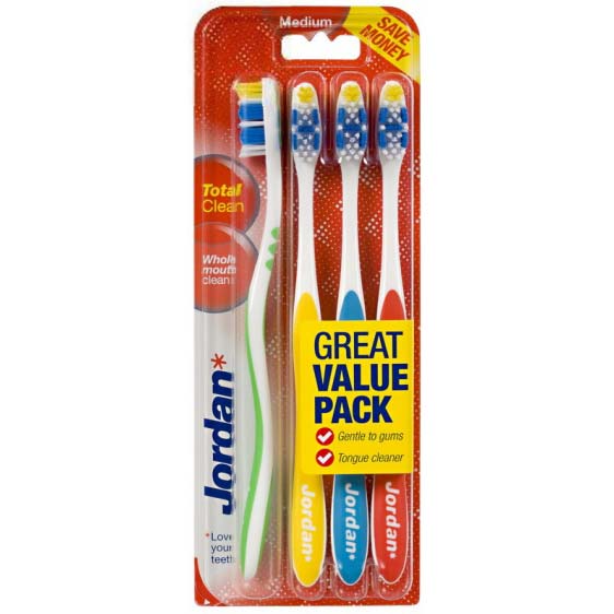 Jordan Total Clean średnie szczoteczki do mycia zębów 4 sztuki