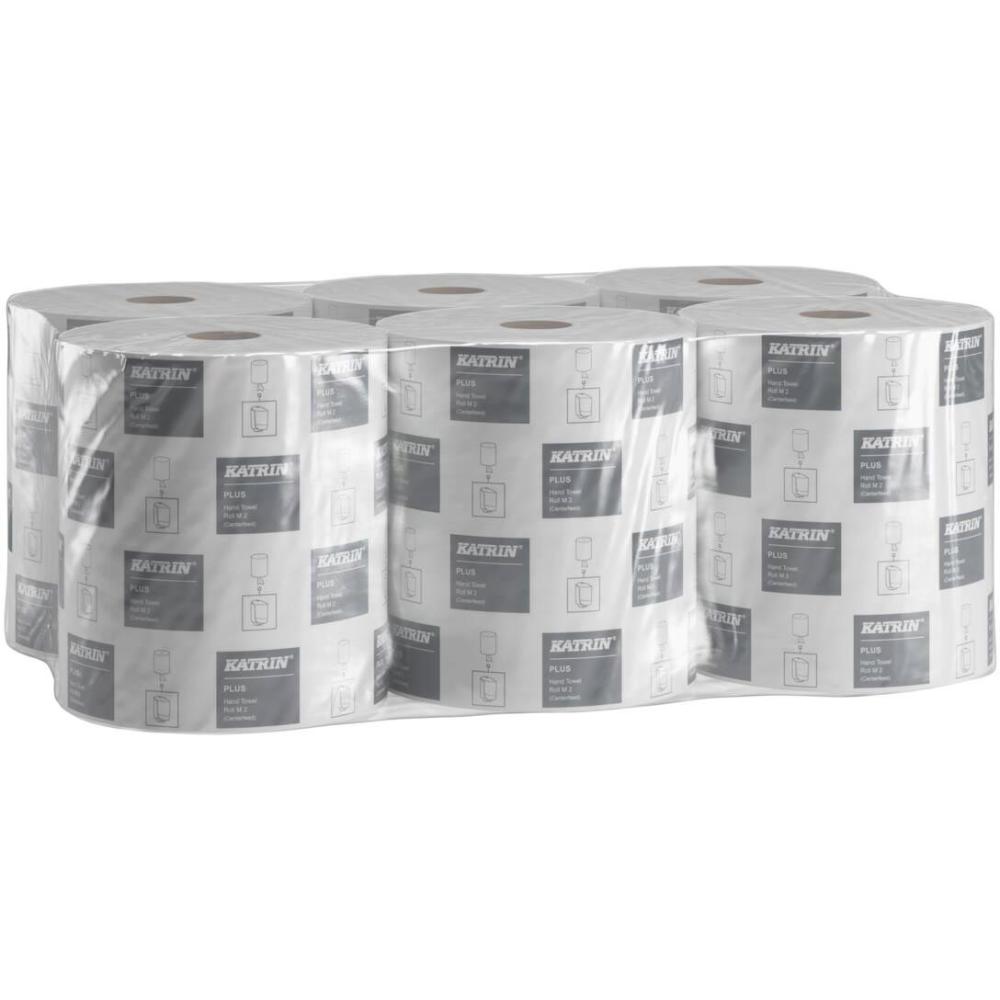 Katrin Plus Maxi bardzo wysokiej jakości celulozowy ręcznik higieniczny o wysokiej białości. Charakteryzuje się dużą szybkością wchłaniania i bardzo wysoką wytrzymałością. Mocna struktura przeciwdziała rozdzieraniu się papieru nawet w przypadku ostrych i nierównych krawędzi. Bardzo miękki papier o niskim pyleniu dla wymagających użytkowników. Produkt posiada certyfikaty ISO9001 oraz ISO14001. Ręcznik dwuwarstwowy o długości 100m w kolorze białym. W opakowaniu znajduje się 6 rolek.