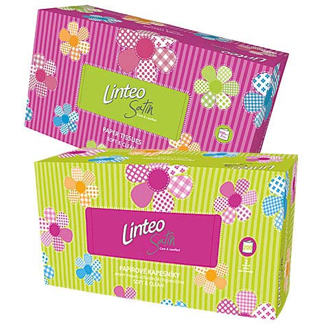 Linteo Satin chusteczki higieniczne w kartoniku. Delikatne i miękkie, dwuwarstwowe chusteczki ze 100% celulozy.